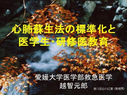 四国がんセンター麻酔科の越智元郎です。心肺蘇生法の標準化と医学生・研修医教育についてまとめた資料を紹介させていただきます。なお、本資料中の写真を提供下さいました皆様に深謝申し上げます。