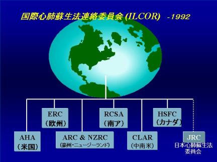ILCORに所属する心肺蘇生法研究・普及団体は米国、欧州、豪州などの 各団体ですが、わが国のJRCも1999年よりILCORに加わるべく交渉中です。