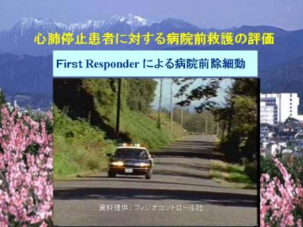 Pittsburghにおいて1994年当時から早期に除細動が実施されていたこと の理由に、ファーストレスポンダー(第一応答者)というシステムがあり ます。米国では消防士や警察官といった、心肺停止患者に遭遇する可能性 のある医師やパラメディック以外の職種の人を訓練し、自動体外式除細動 器(AED)を用いた除細動を実施できる資格を与えています。Pittsburgh の心肺停止例の一部はパラメディックの現場到着に先立ち、消防士などに よる除細動が実施されているのです。