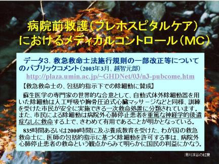 私は今年3月、厚生省が救急救命士法施行規則の一部改正に先立ち募集し たパブリックコメントとして、詳細な意見書を送付させていただきました。