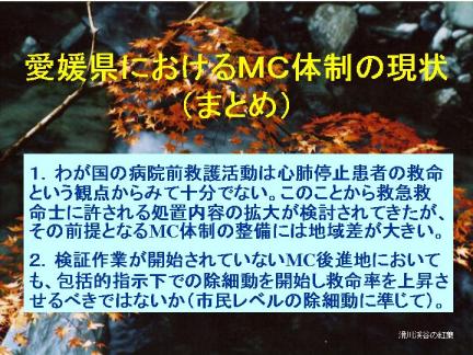 以上、愛媛県におけるMC体制の現状についてお話しをさせていただき ましたが、まとめとして