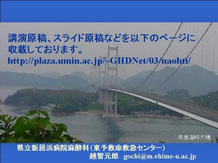 これは来島海峡大橋です。なお、今回の講演原稿、スライド原稿などを ウェブ(http://plaza.umin.ac.jp/~GHDNet/03/naohti/)に収載しており ますので、ご参照いただけましたら幸いでございます。
