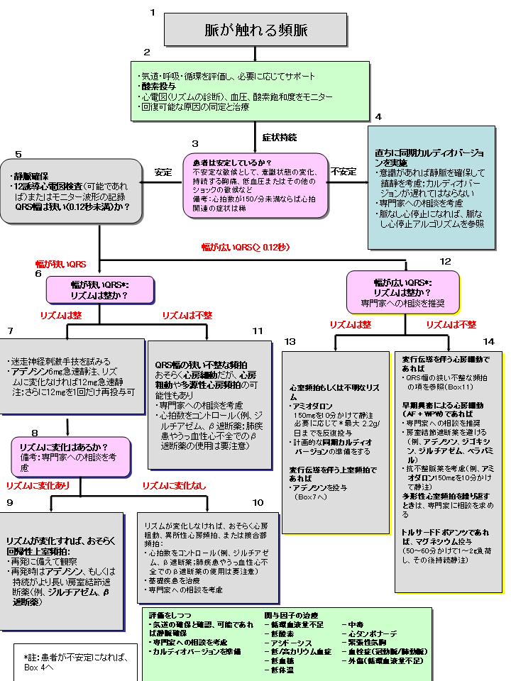 評価と治療から始まり、ACLSにおける徐脈と頻拍のアルゴリズムに集約されている情報について