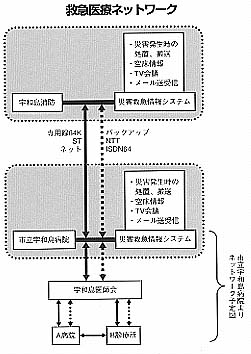 図、宇和島市の救急医療ネットワーク構想 マルチメディアを駆使した救急医療ネットワークがスタート(本文)へ