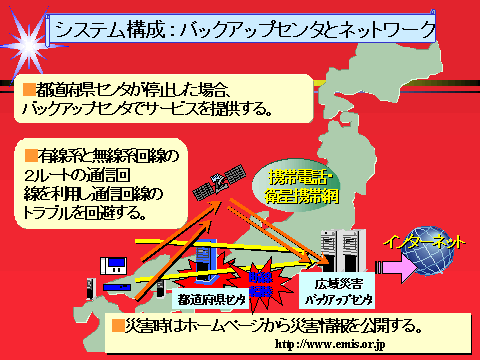 さらに、被災地の都道府県センターが停止した場合には、「広域災害バックアップセンタ」でそのデータをバックアップしており、また電話回線が断線・輻輳