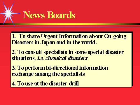 1) わが国や海外の進行中の災害に関する情報を掲示すること、