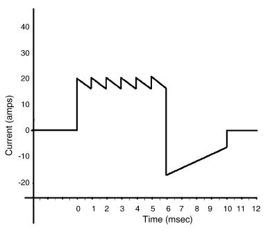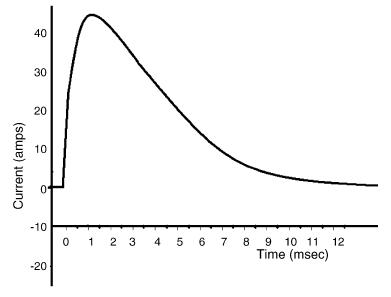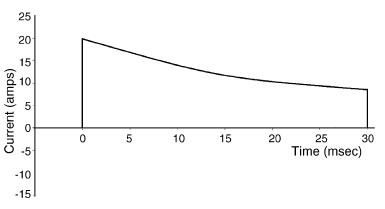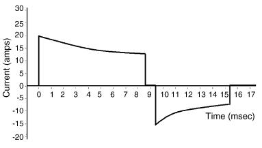 二相性波形を用いた除細動器は10年前、注意深く(訳者註:医療現場に)導入されたが、今や単相性波形の機器よりも好まれている。単相性波形の除細動器はまだかなり使用されてはいるが、もはや生産されてはいない。これらの除細動器では、電流は単極性である(1つの方向性にしか電流が流れない)。主に 2つのタイプの単相性波形がある。最も一般的な波形は単相性減衰サインカーブ波形(monophasic damped sinusoidal (MDS))(図3.1)で、これは電流が徐々にゼロに戻って行く。もう1つの単相性切断指数波形(monophasic truncated exponential (MTE))は電流がゼロに戻る前に電気的に波形が強制終了される (図3.2) 。対照的に、二相性の除細動器は初めある程度の時間プラスの方向に電流を流し、その後数ミリ秒の電気放出はマイナスの方向に反転させて電流を流す。二相性の波形にも二相性切断指数波形(biphasic truncated exponential, BTE) (図3.3))と二相性直線波形(rectilinear biphasic, RLB) (図3.4))の2つのタイプがある。二相性波形の除細動器では、電気的に波形の振幅と波長を調整することで経胸郭インピーダンス胸郭を補正(compensate)している。初期フェーズから第二期フェーズまでの間隔比や発火端(leading-edge)での電圧についての最適な値はまだ確立されていない。異なる波形を用いた場合に、異なる周波数の心室細動(VF)に対し除細動効率が異なるのかどうかはまだわかっていない。