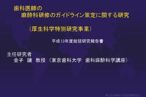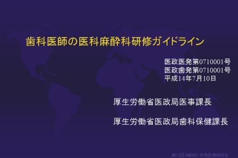 このような経緯で平成14年7月に、歯科医師の医科麻酔科研修ガイドラインが完成し現在ではほとんどの施設がこのガイドラインに基づいて研修されていると思いますので、私が何人かの先生に聞いた知見を交えて紹介させていただきます。