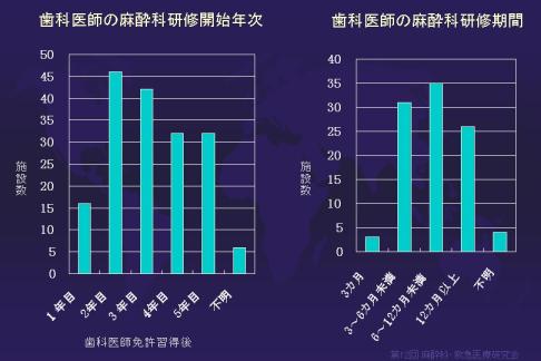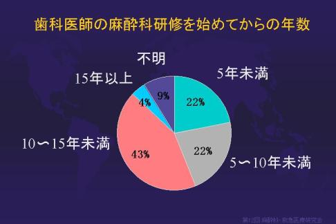 先ほど説明した歯科医師側からの研修を初めてからの年数より、全体的にパーセンテージが下がっているのは、歯科口腔外科医が麻酔科研修を受けている数もプラスされたためと思われます。