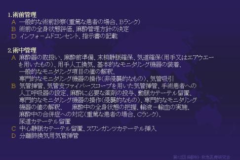 術後管理や特殊な手技については研修ですので、C,Dランクは当然のことと思いますのでほぼ妥当なものではないかと考えております。