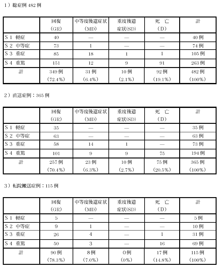 state)は、症例数が少ないため、重度後遺症状に含めた。 |