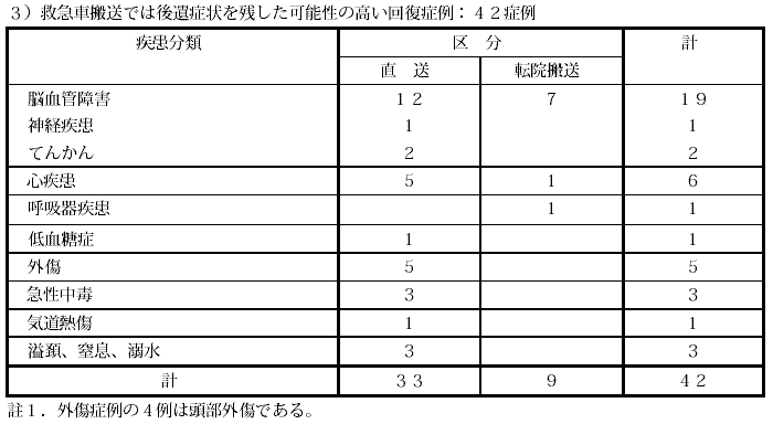 | ・救急車搬送では後遺症状を残した可能性の高い回復症例 |