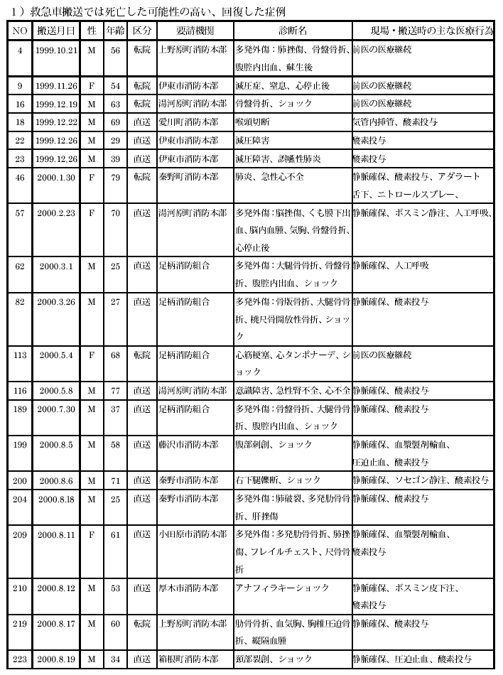 | ・救急車搬送では死亡した可能性の高い後遺症状症例 |